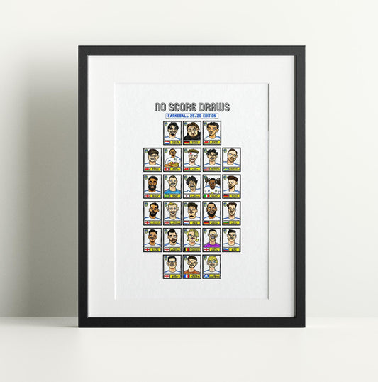 Leeds Utd 25/26 - No Score Draws Farkeball 25/26 Edition - A3 print of 26 Wonky Hand-Drawn Panini-doodles Of Daniel Farke's LUFC PL Squad