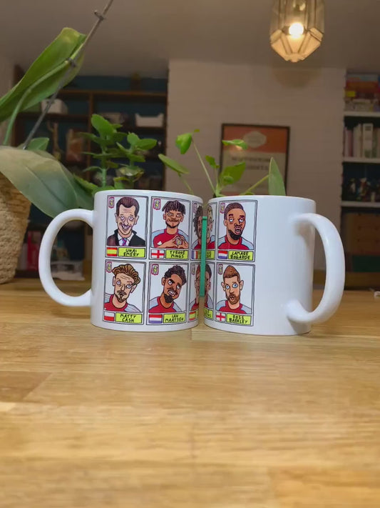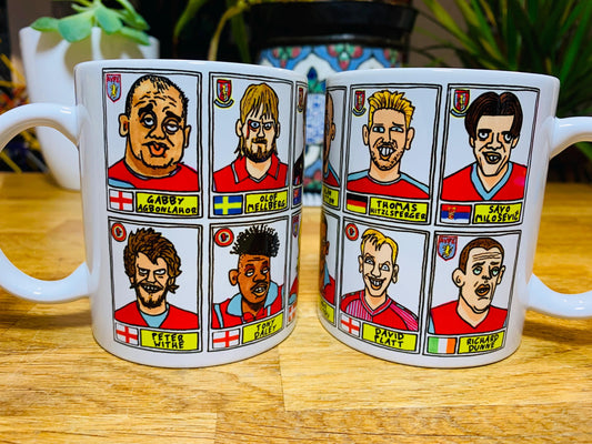 Aston Villa Icons No Score Draws Mug Set - Set of TWO DIFFERENT 11oz Ceramic Mugs with Wonky Panini-style AVFC Villains Football Doodles