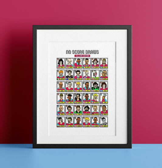 Aston Villa Icons - No Score Draws Villans Edition - A3 print of 36 hand-drawn Panini-style football sticker icons - Cheapskate football art
