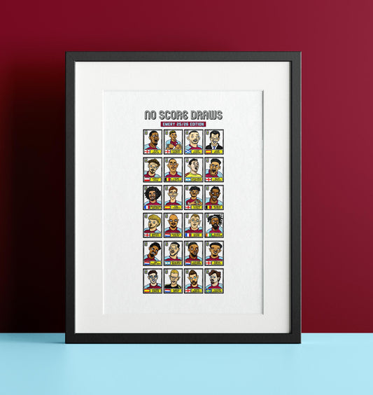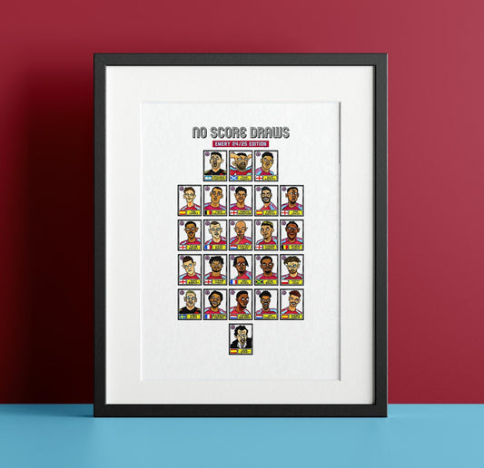 Aston Villa 25/26 - No Score Draws Emery 25/26Edition - A3 print of 24 Wonky Panini-style football doodles of Unai Emery's 25/26 AVFC Side