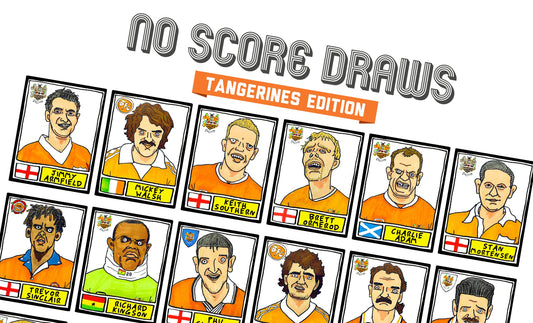 Blackpool - No Score Draws Tangerines Edition - A3 print of 36 hand-drawn Panini-sticker-style BFC Tangerines icons - Wonky football art