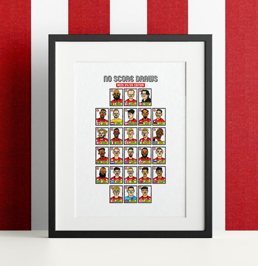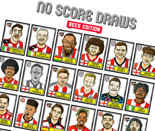 Brentford Vol 3 - No Score Draws Bees 24/25 Edition - A3 print of 25 hand-drawn Panini-style Doodles Of Thomas Frank's Brentford 24/25 Squad