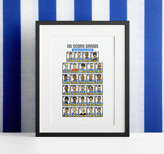 Brighton - No Score Draws Seagulls Edition - A3 print of 36 hand-drawn Panini-style Brighton legends - Cheapskate football art