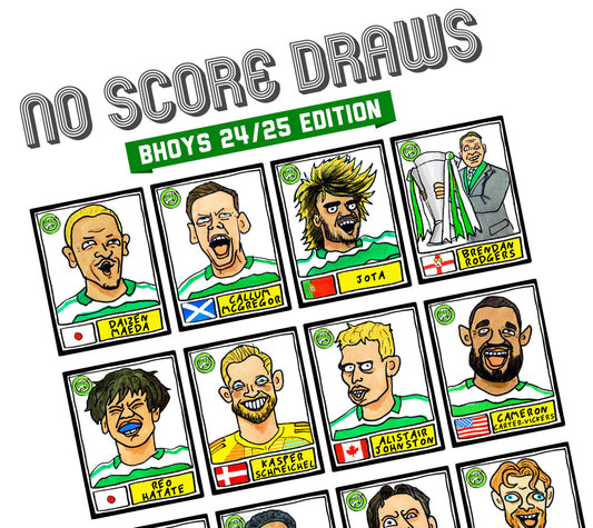 Celtic Vol 4 - No Score Draws Bhoys 24-25 Edition - A3 print of 24 hand-drawn Panini-style Doodles of Brendan Rogers 24-25 SPL Champions