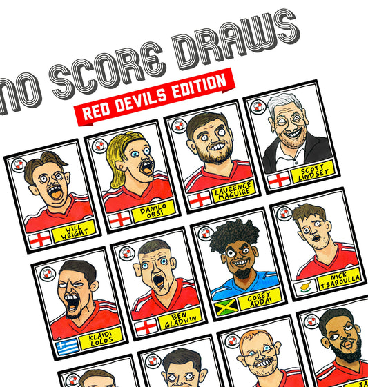 Crawley Town - No Score Draws Red Devils Edition - A3 print of 24 hand-drawn Wonky Panini-style Doodles Of CTFC's 23-24 Promotion Winners