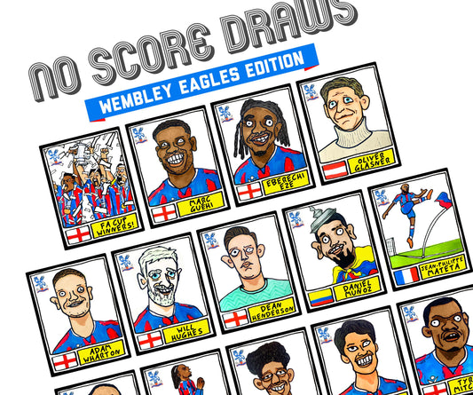 Crystal Palace - No Score Draws Eagles Edition - A3 print of 36 hand-drawn Panini-style football sticker legends - Cheapskate football art