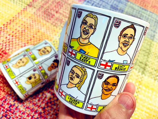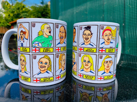Lionesses Vol 1 England Women's No Score Draws Mug Set - Set of TWO 11oz Ceramic Mugs with Wonky Panini-doodles of England's Euro 2022 Squad