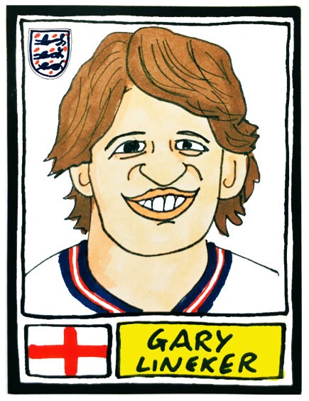 England Vol 1 - No Score Draws Three Lions Edition - A3 print of 36 hand-drawn Panini-style England football sticker icons - Wonky footy art