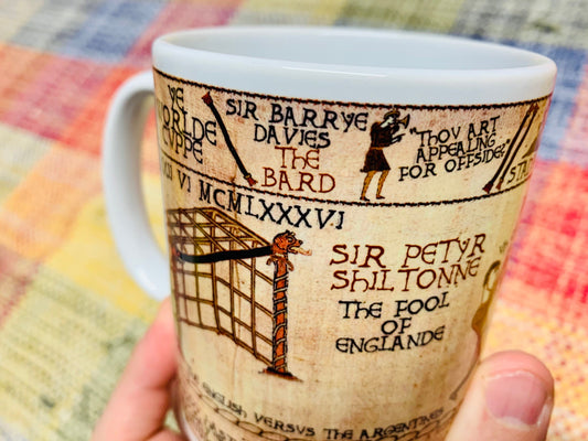 Hand Of God Bayeux Tapestry Mug By No Score Draws - 11oz Ceramic Mug Depicting An Historic Depiction of Diego Maradona's Goal v England 1986