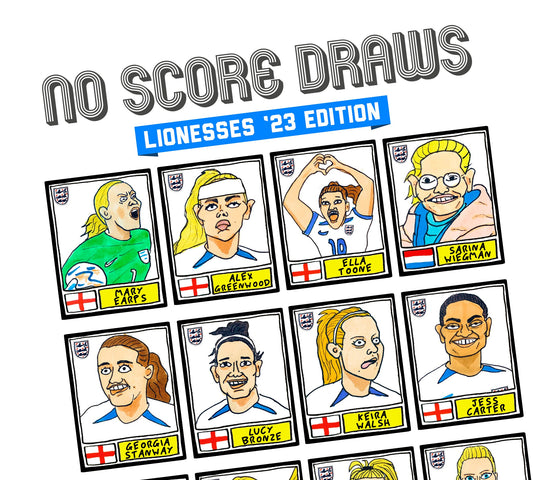 England Lionesses Vol 2 - No Score Draws Lionesses '23 Edition -A3 print of 24 wonky Panini-style doodles of England World Cup 2023 Squad