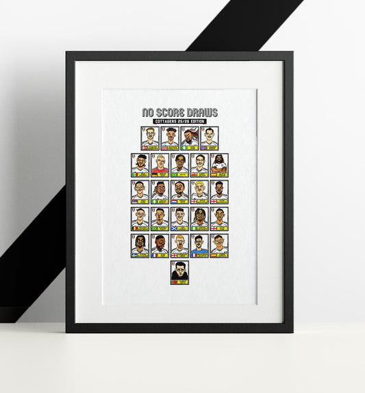 Fulham 25/26 - No Score Draws Cottagers 25/26 Edition - A3 print of 25 Wonky Panini-Style No Score Draws Doodles Of Marco Silva's FFC Squad
