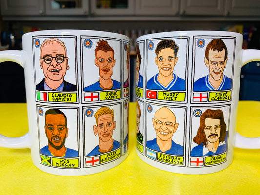 Leicester City 24/25 No Score Draws Mug Set - Set of TWO DIFFERENT 11oz Ceramic Mugs with 24 Wonky Panini-style Doodles of LCFC's 24-25 Team