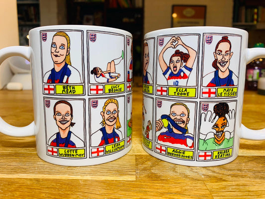 Lionesses Vol 1 England Women's No Score Draws Mug Set - Set of TWO 11oz Ceramic Mugs with Wonky Panini-doodles of England's Euro 2022 Squad