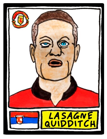 Definitely NOT Man United - No Score Draws Man Red Edition - A3 print of 36 hand-drawn Panini-style NOT Man Utd football legends