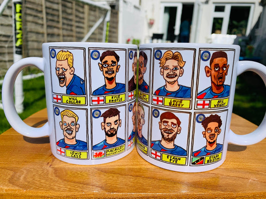Ipswich Town Mug Set - Set of TWO 11oz Ceramic Mugs with Wonky Panini sticker-style No Score Draws Doodles of 24 ITFC Tractor Boys icons