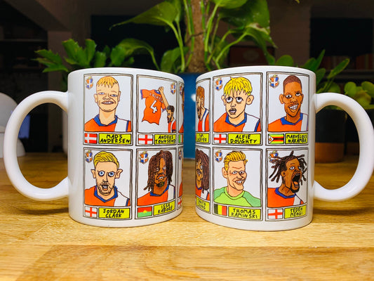 Luton Town Vol 3 No Score Draws Mug Set - Set of TWO 11oz Ceramic Mugs with Wonky Paninified Hatters Doodles of LTFC's 23/24 EPL Heroes