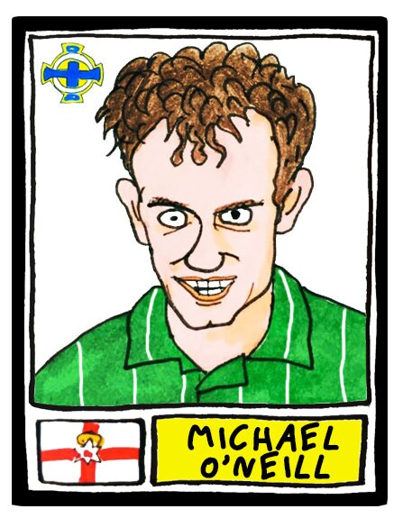 Northern Ireland - No Score Draws Norn Iron Edition - A3 print of 36 hand-drawn Panini-style football legends - Cheapskate football art