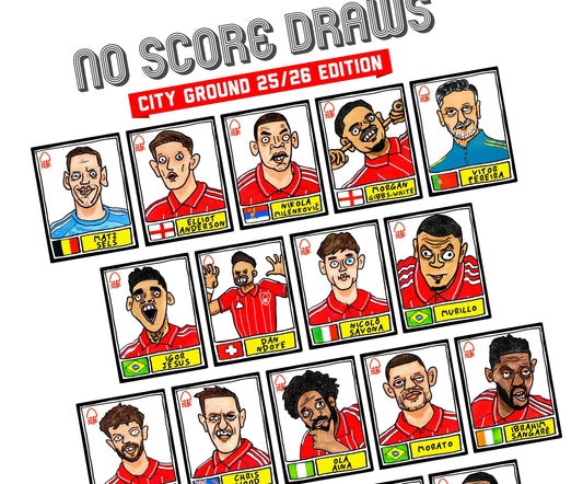 Nottingham Forest Vol 6 - No Score Draw City Ground 25/26 Edition - A3 print of 27 Wonky Hand-Drawn Panini-doodles of NFFC's 25/26 Squad