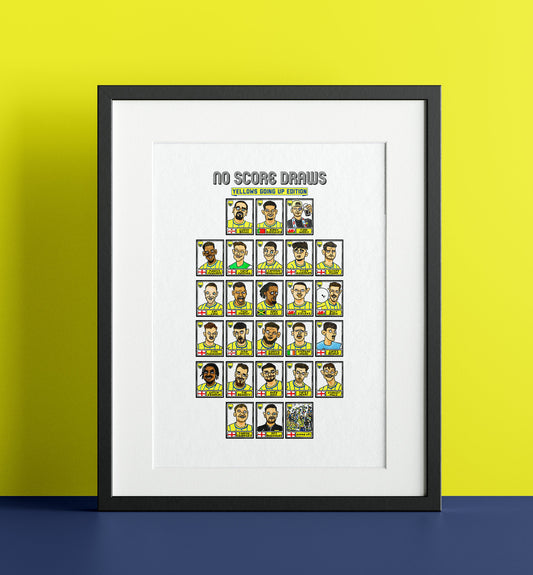 Oxford United - No Score Draws Yellows Edition - A3 print of 36 hand-drawn Panini-style football sticker legends - Cheapskate football art