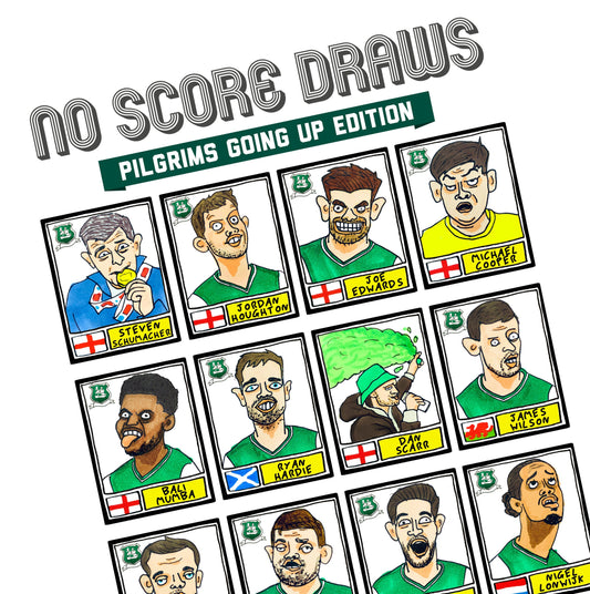 Plymouth Argyle - No Score Draws Pilgrims Edition - A3 print of 36 hand-drawn Panini-style PAFC icons - Wonky cheapskate football art