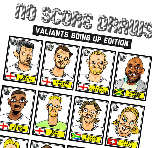 Port Vale - No Score Draws Valiants Edition - A3 print of 36 hand-drawn Panini-style Port Vale PVFC legends - Cheapskate football art