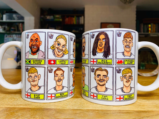 Port Vale Vol 2 Going Up No Score Draws Mug Set - Set of TWO DIFFERENT 11oz Ceramic Mugs with 24 Wonky Panini-Doodles of PVFC's 24-25 Team