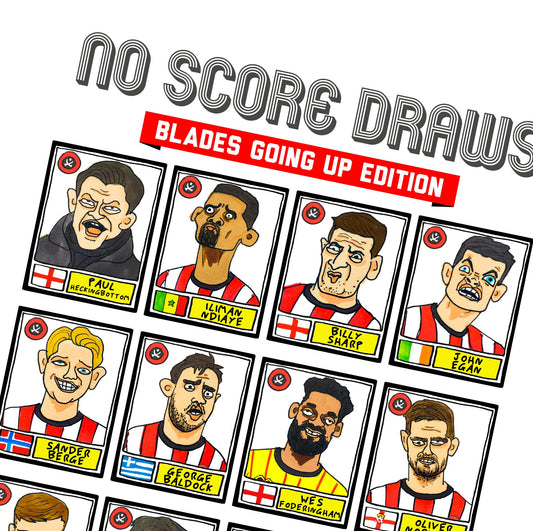 Sheffield United - No Score Draws Blades Edition - A3 print of 36 hand-drawn Panini-style football sticker legends - Cheapskate football art