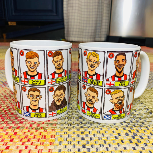 Sheffield United Vol 2 No Score Draws Mug Set - Set of TWO 11oz Ceramic Mugs with Wonky Panini-style Doodles of SUFC 22/23 Promotion Winners