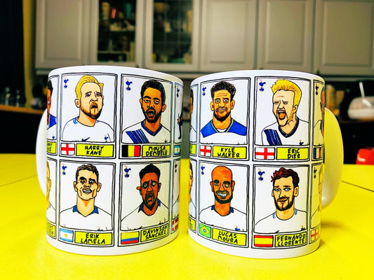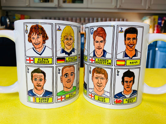 Spurs Volume 2 No Score Draws Mug Set - Set of TWO 11oz Ceramic Mugs with Wonky Panini sticker-style THFC Poch Era No Score Draws Doodles