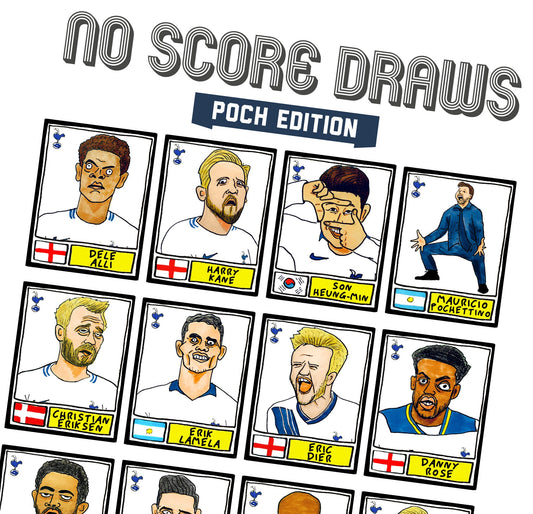 Spurs Volume 2 - No Score Draws Poch Edition - A3 print of 24 hand-drawn Panini-style football sticker legends - Poch era THFC football art