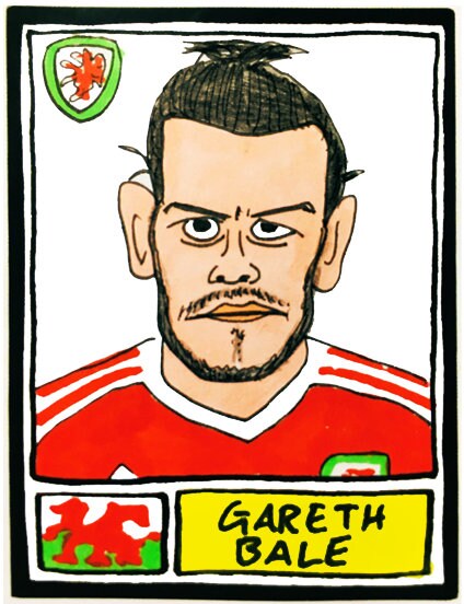 Wales - No Score Draws Cymru Edition - A3 print of 36 hand-drawn Panini-style Wales football icons - Cheapskate footy art