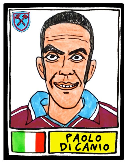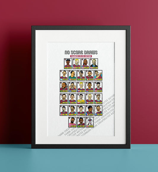 West Ham - No Score Draws Irons Edition - A3 print of 36 hand-drawn Panini-style football sticker legends - Cheapskate football art